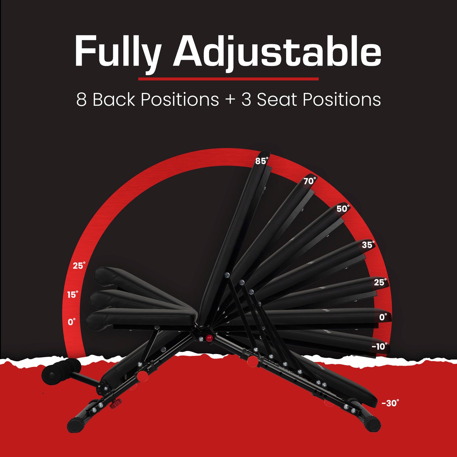 Fully adjustable for more workouts (8 back positions + 3 seat positions)